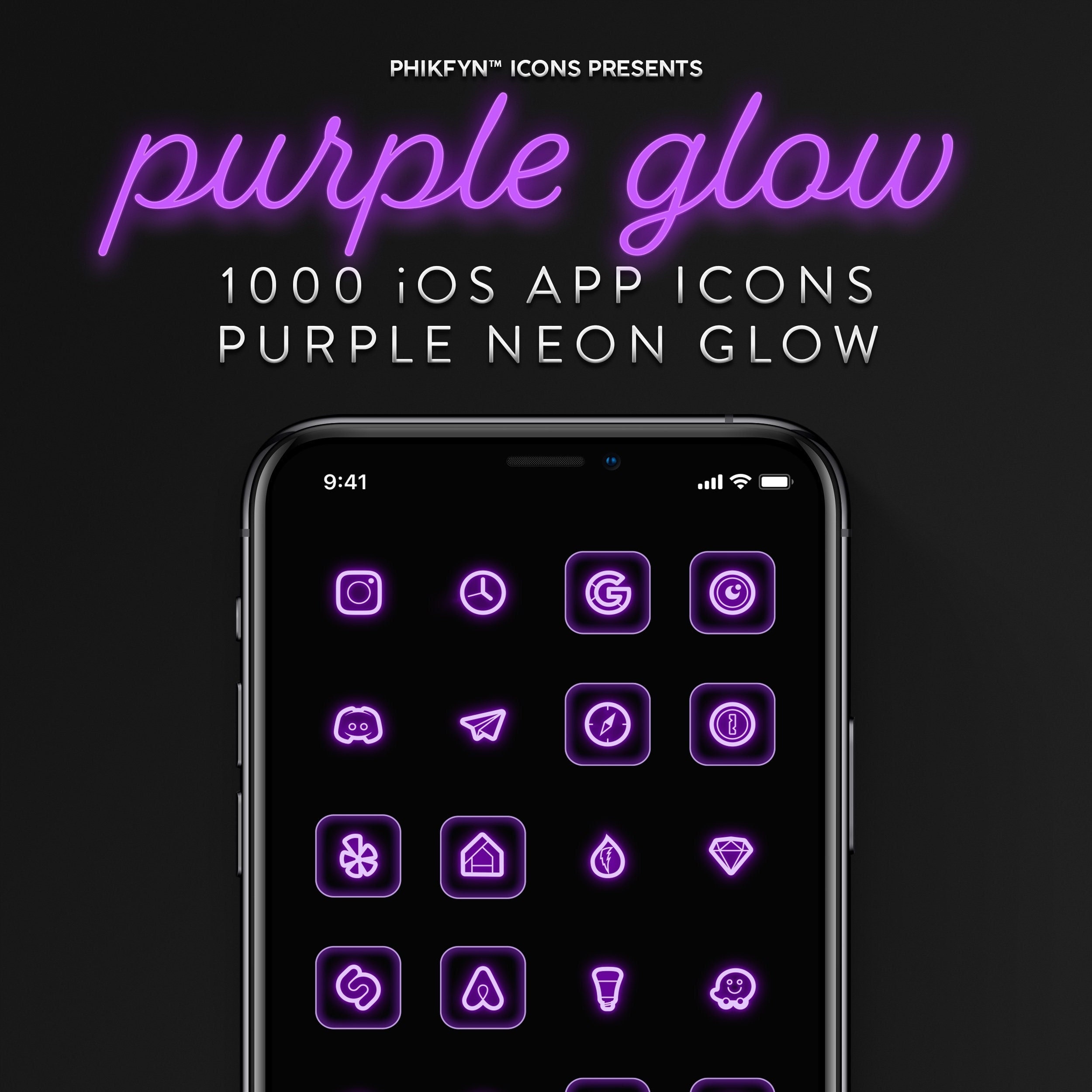 1000 Purple Neon Glow Ios Iphone App Icon Pack Premium Neon Etsy